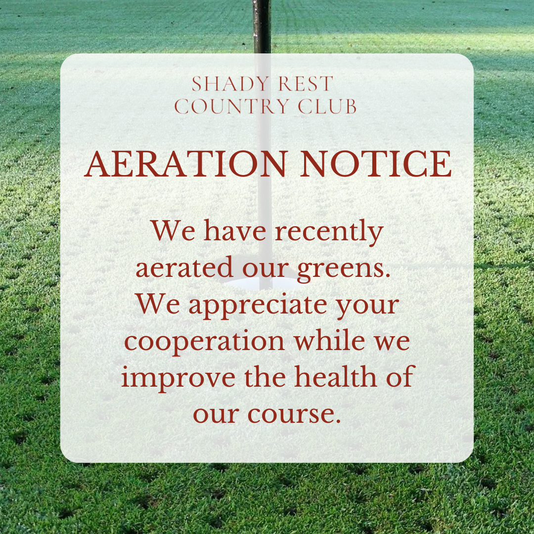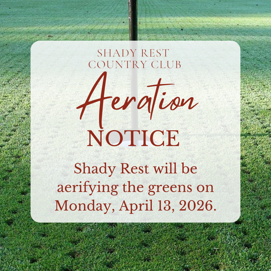 The 9-hole Shady Rest course features 2,247 yards of golf from the longest tees for a par 33. The course rating is 33.3 and has a slope rating of 106 on blue grass. Property includes a Pro Shop, Clubhouse, and a Pavilion.